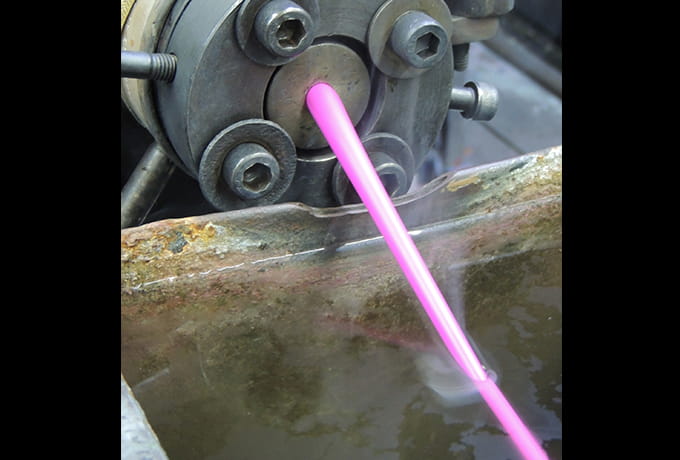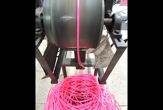 専用の機械で次々と製造されるPVCコード。