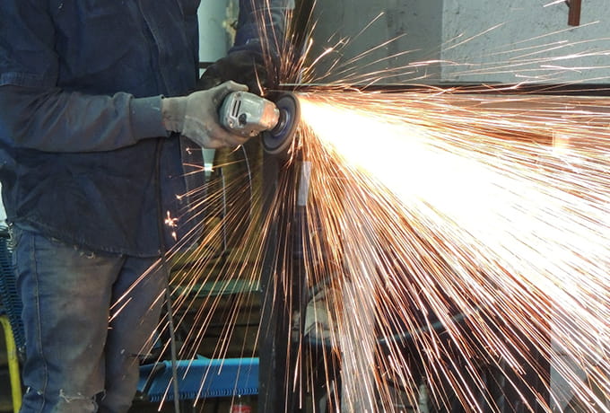 溶接、切断、研磨等のフレーム用スチール加工も同じ工場で行っています。